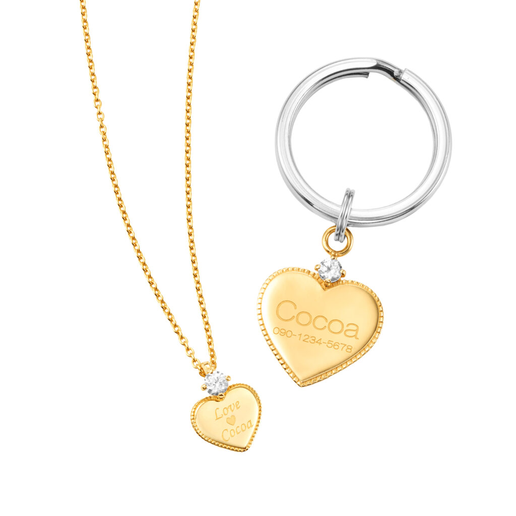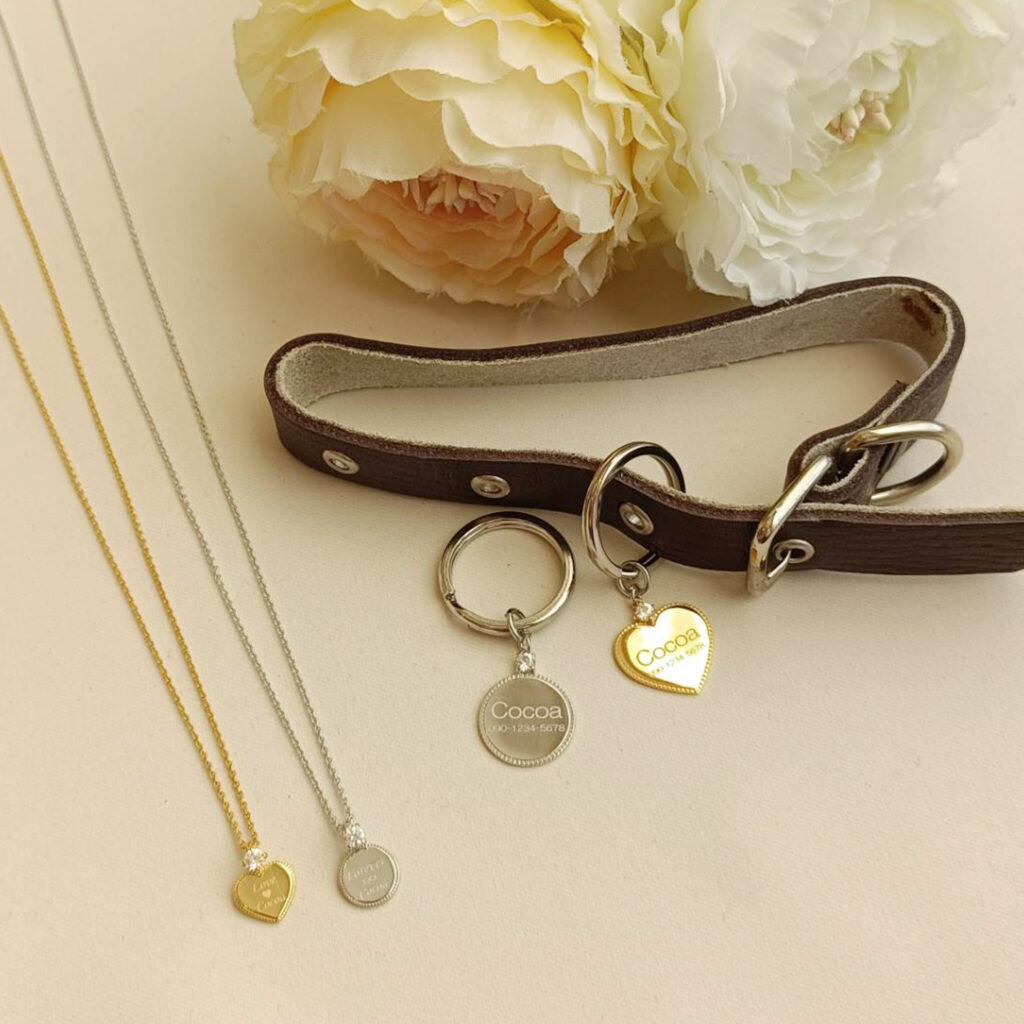 愛しいペットちゃんとのそんな“特別な日”を形に残すためのお揃いペンダントです。ペットちゃんのチャームには、「万が一離れてしまっても、気持ちはつながっているから、必ず帰ってきてくれる」そんな深い願いを込め、迷子札としての役目も果たします。