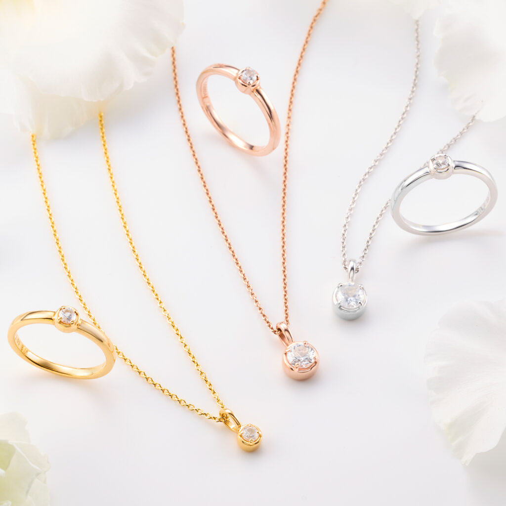 胸元に宿るひと粒が、これからの未来をそっと照らします。
